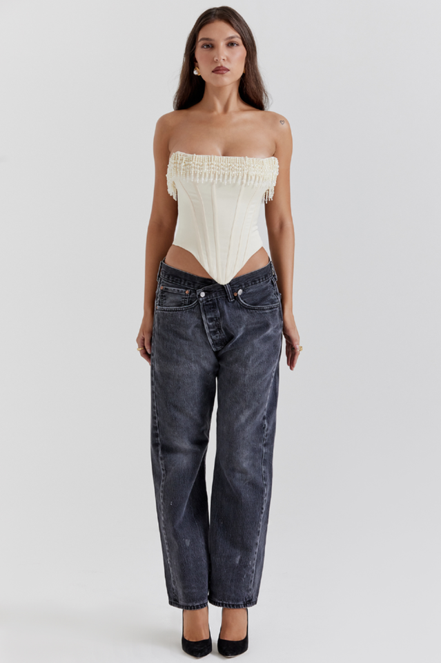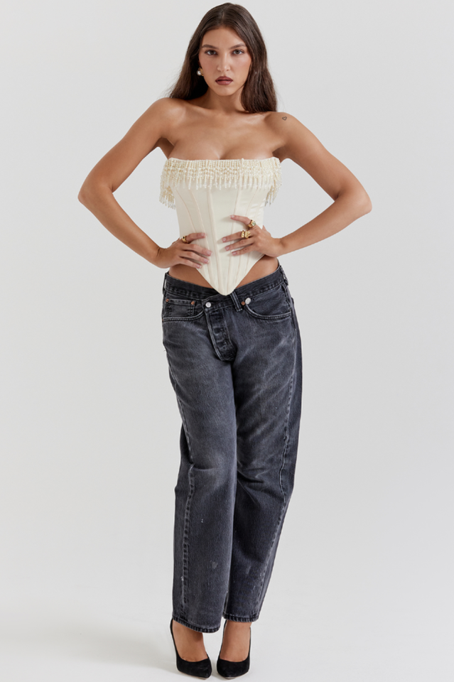 One of the season's most flattering tops, "Aubrie" corset is ultra-feminine and perfect for parties. We love that it can be paired with either a skirt or jeans.